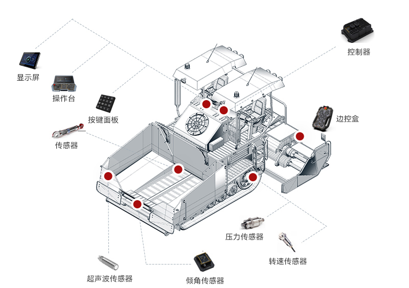 乐玩lewin智能摊铺机解决方案整合了感知技术、自动控制系统和数据分析算法,实现了摊铺机高度智能化操作。通过实时获取路面信息和实时调整施工参数,使摊铺机操作更加精准、高效和可靠。